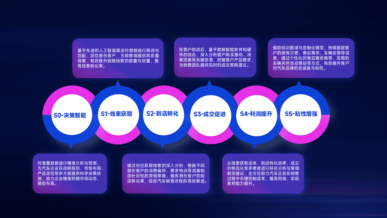 通过拓宽潜在客户来源、、、、优化线索分配并提高到店转化率,,,,以增强销售效率。。同时,,,,利用线索数据不断优化分析模型,,有效提升转化率,,,扩大营销影响力。。。